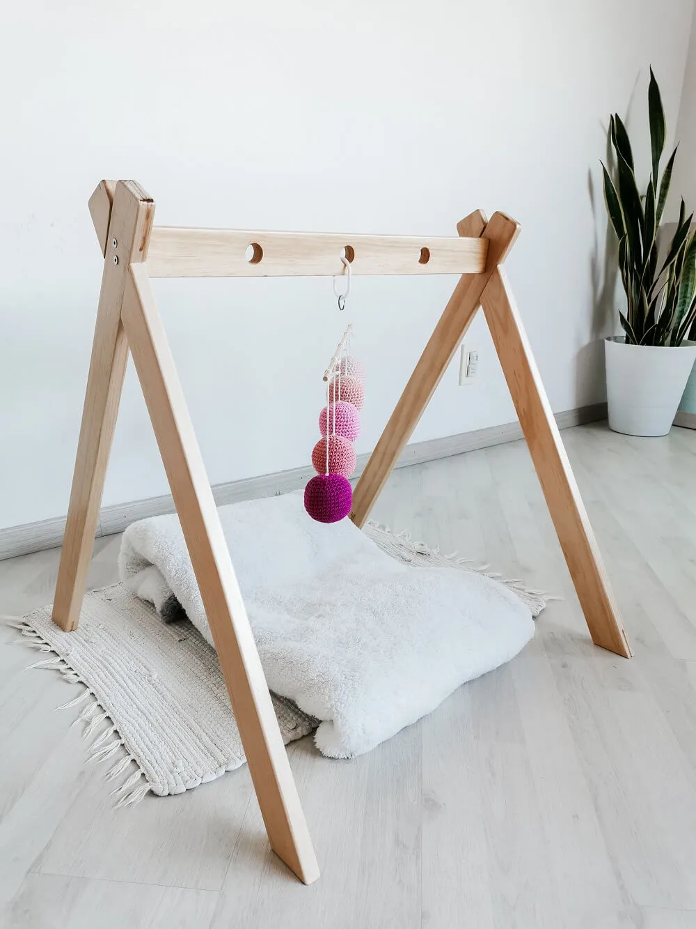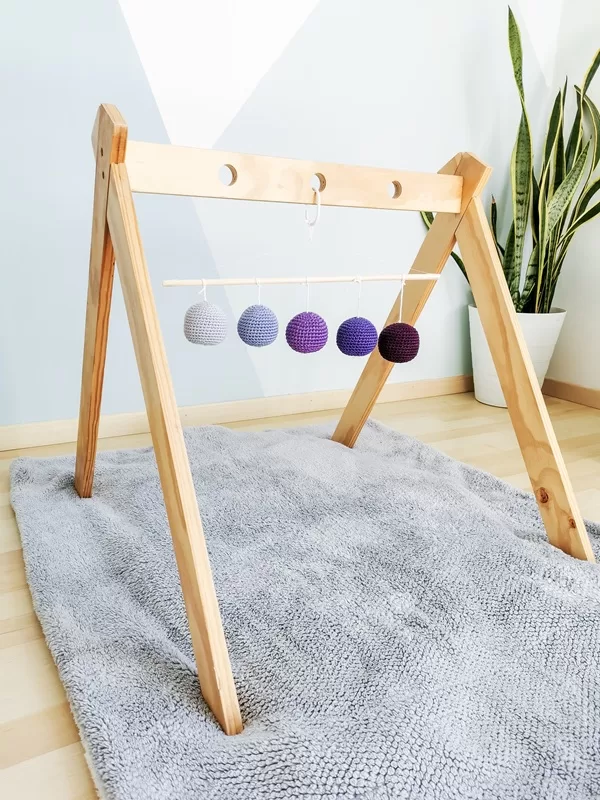 Inspirado en la metodología Montessori, este móvil Montessori para bebés cuenta con cinco esferas en crochet dispuestas en un degradado de color, favoreciendo la percepción visual y la diferenciación de tonalidades. Además, cada esfera incluye un cascabel, permitiendo que más adelante se convierta en un móvil táctil y un juguete dentro de los juegos didácticos para bebés.