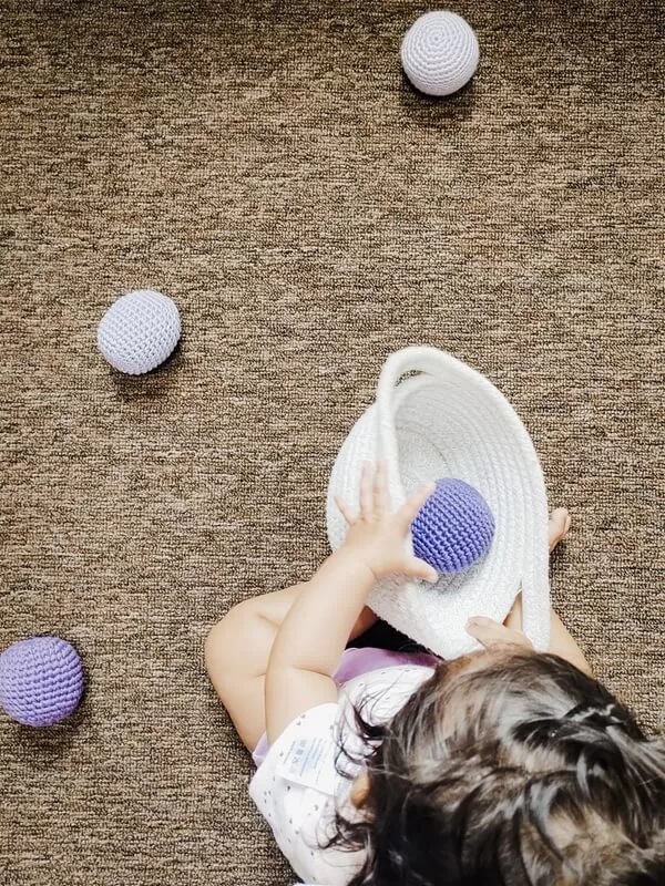 Y cómo no terminar con la pelota Montessori, simplemente le fascina :).
